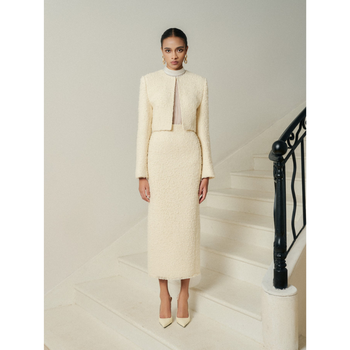 하이 엔드 디자인 긴팔 크롭 탑 재킷 트위드 패브릭 프론트 걸쇠 JITA CROPPED WOOL BLEND 트위드 재킷 여성 세트 베트남