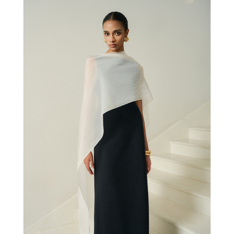 하이 퀄리티 원피스 LINRI Silk 새틴 롱 케이프 럭셔리 디자인 미슨 새틴 패션 의류 화이트트 베트남 사용자 정의 로고 및 라벨