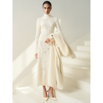 새로운 스타일 드레스 여성 긴팔 스텔라 엠브 레이스 미디 원피스 유기농 코튼 플라워 레이스 투피스 세트 여성 화이트언트 공장