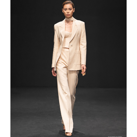 긴팔 여성용 블레이저 EMI SAND JACQUARD BLAZER 스트레이트 컷 긴팔 샌드 자카드 화이트 앤트 베트남